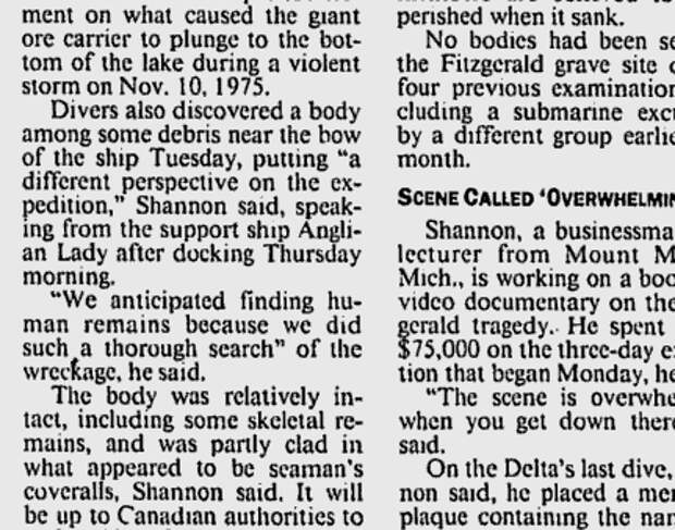 В 1994 году исследователи, спустившиеся на дно, обнаружили среди обломков останки человека в спасательном жилете. Факт этой находки вызвал у общественности чувства, противоположные восторгу или одобрению.