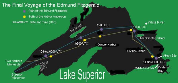 Несмотря на все усилия, приложенные капитаном Максорли и его командой, «Эдмунд Фицджеральд» не прибыл к месту назначения. Да, он затонул. Это произошло 10.11.1975 около 19:20 всего в 17 милях от спасительного залива Уайтфиш, куда Максорли вел свое судно, рассчитывая укрыться там от урагана.