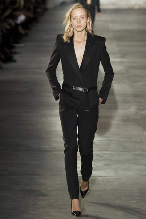 Наконец-то опять вернулся в моду тот самый элегантный и всегда потрясающе изысканный брючный костюм (или смокинг) в мужском стиле. Иву Сен Лорану мы и должны сказать за это большое спасибо. В 70-х годах именно он задумал дать нам всем возможность отнять у мужчин самое святое для них — костюм.