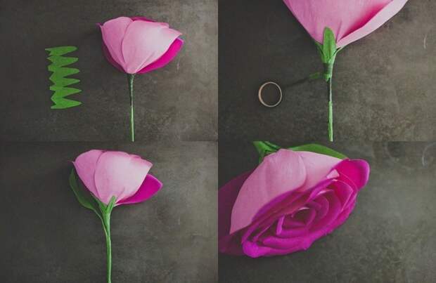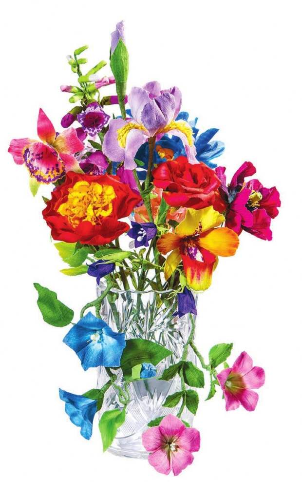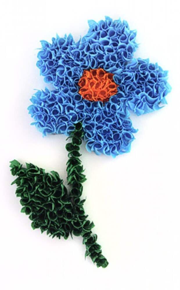 Листы креповой бумаги легко режутся, сгибаются и скручиваются, обработанные элементы долго сохраняют свою форму и привлекательный внешний вид, их цвет не выгорает на солнце.